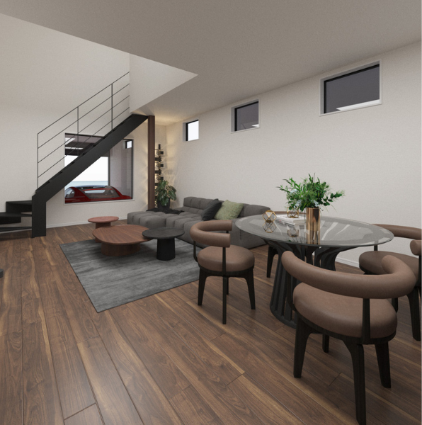 大開口リビングから、いつでも愛車を眺められる贅沢。