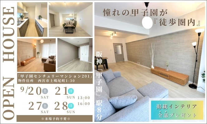 9/20(土)9/21(日) 9/27(土)9/28(日) 【オープンハウス開催!】in甲子園センチュリーマンション